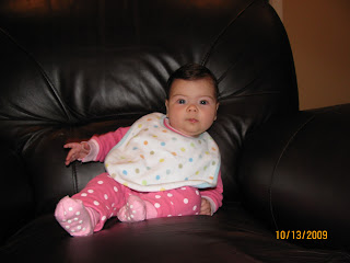 My Mom came out today as well-she arrived around 3 or so and we had Avery decked out in Halloween gear my Mom bought her. I love the look on her face here: